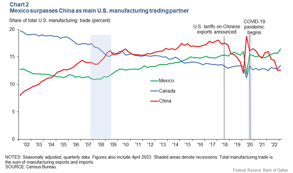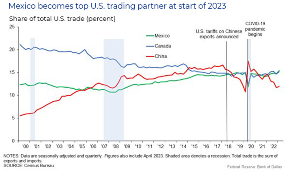 But Mexico even so, overtook China as the leading trade partner of the U.S. in 2023, and that signaled a geopolitical and economic shift with far-reaching potential implications from just registering a mere statistic fact.